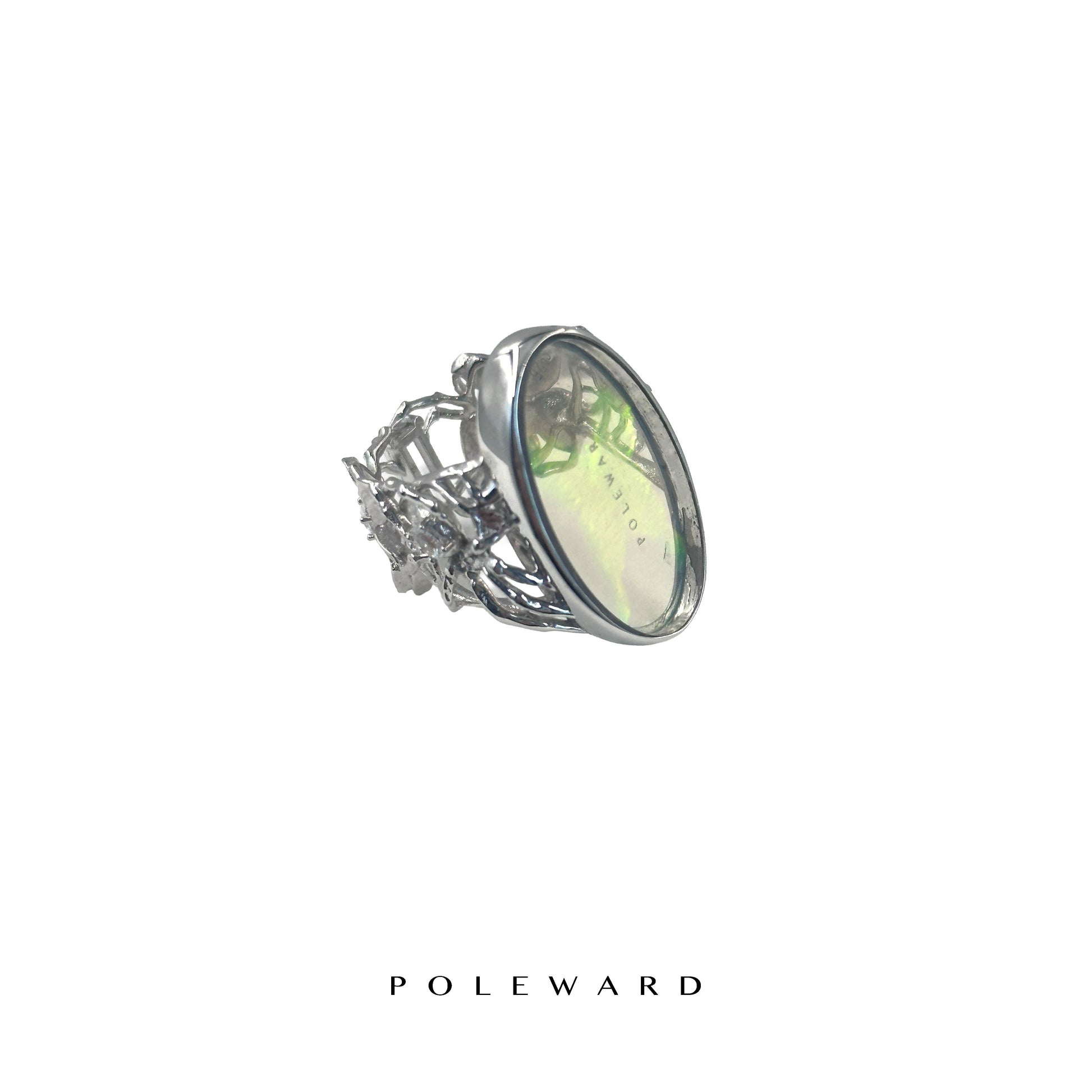 Crafted in S925 sterling silver, the ring features sculptural details of spiders intertwined with orchids along the band.